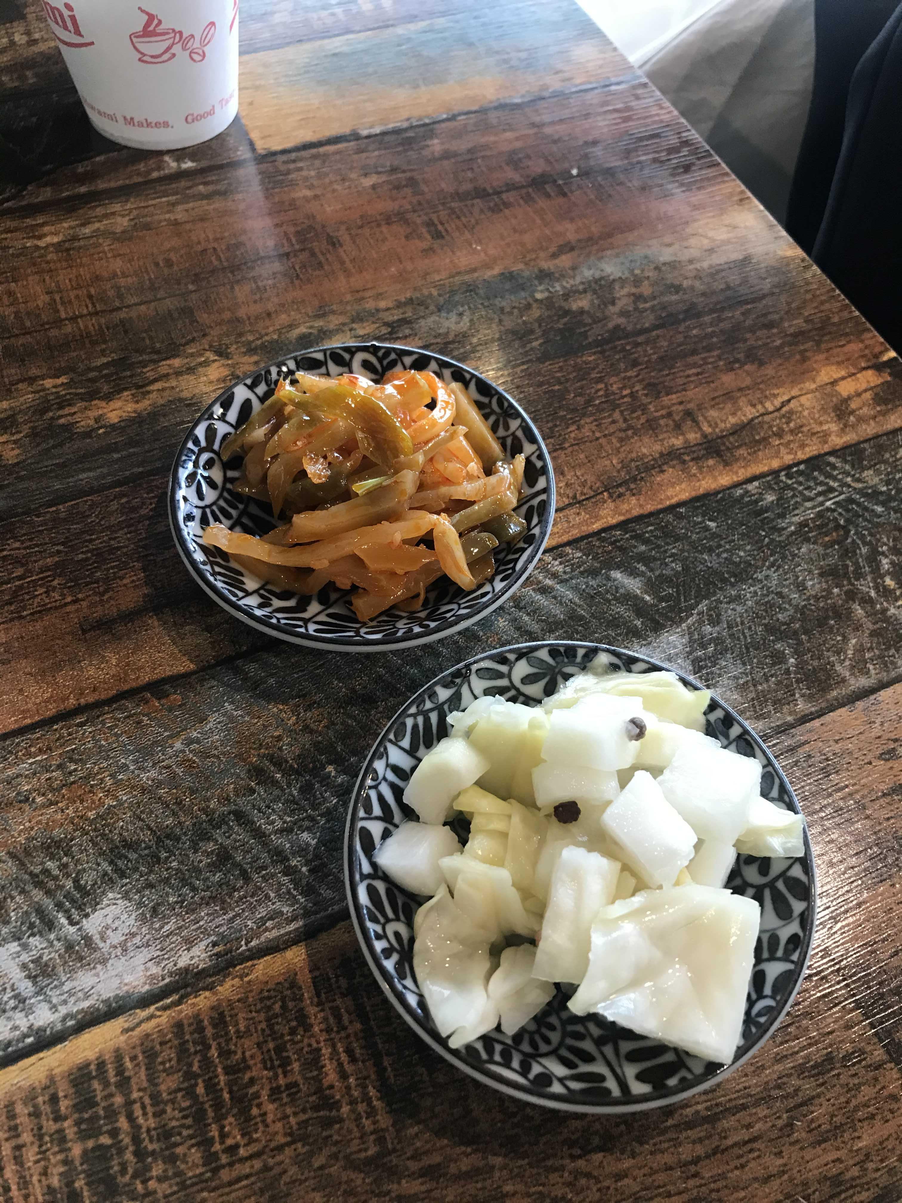짜사이와 양배추 무 피클? 이 피클이 느끼한맛을 잡아줘서 너무 좋았다 거의 치킨무 수준